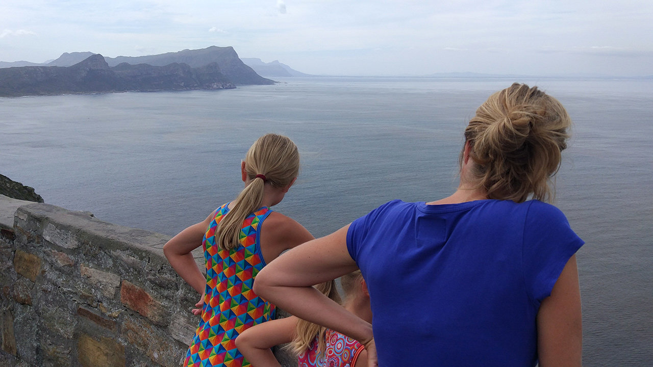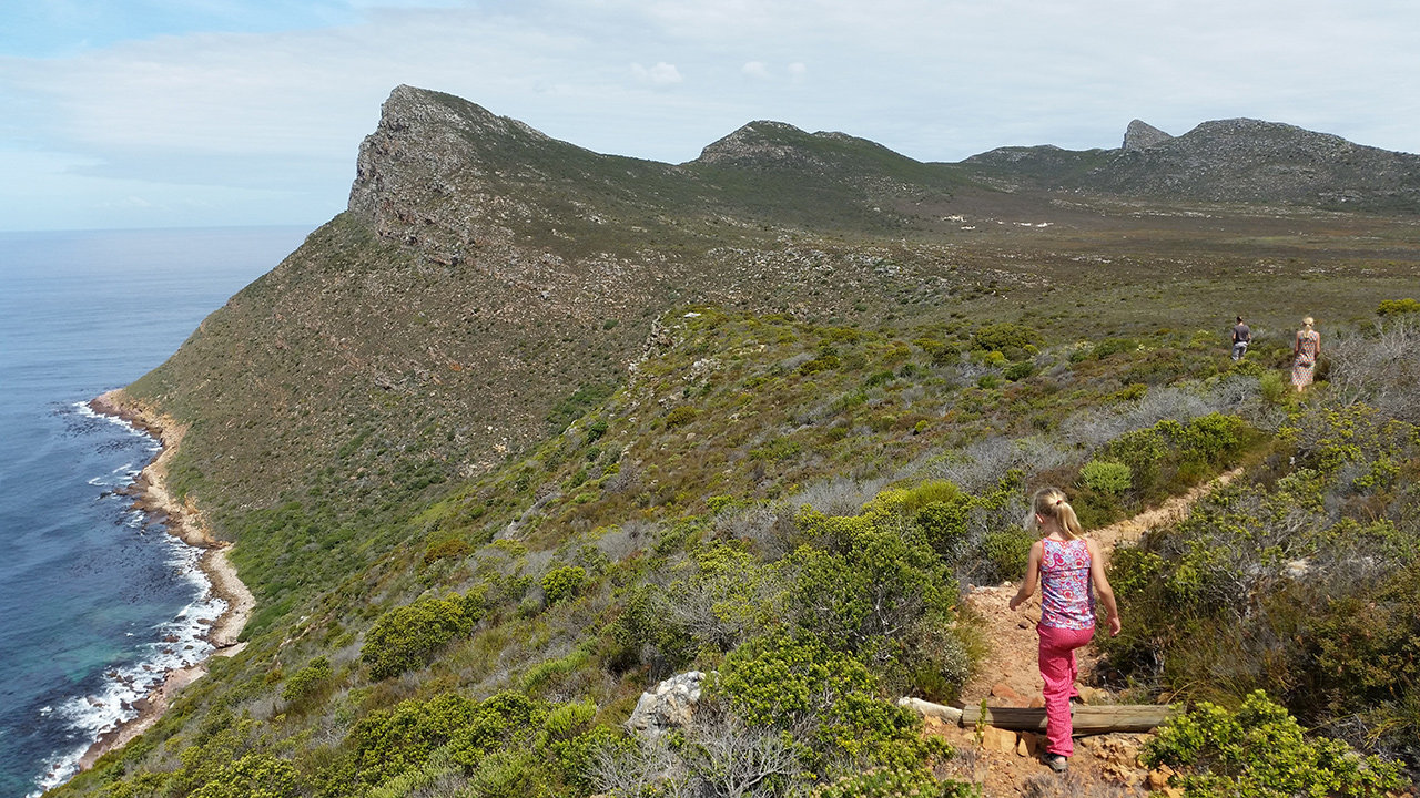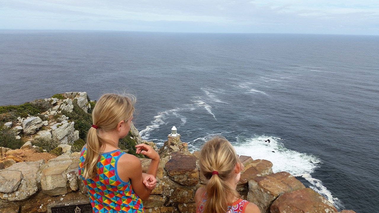 Heute waren wir ein bisschen unterwegs. Wir besuchten mit dem Auto einen Nationalpark und fuhren zum Cape Point. Dort gab es jede Menge Berge, Felsen und Meer. Wir fuhren bis zum letzten Zipfel von Südafrika, wo sich der atlantische und der indische Ozean kreuzen. Die Klippen gingen steil hinab.
