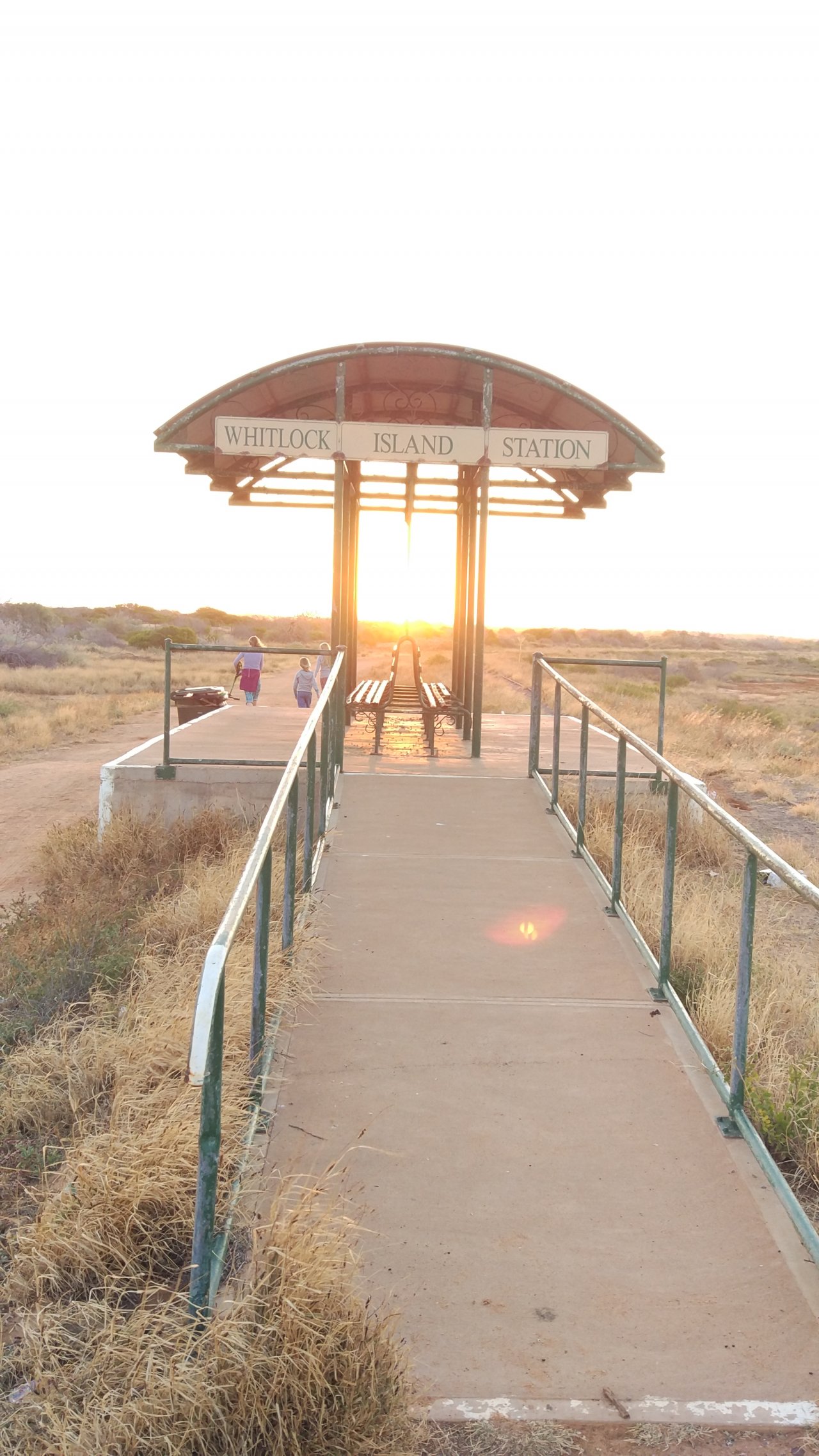 Nach einem Frühstück am Meer sind wir zwei Stunden durch eine inmer gleichförmige Landschaft gefahren. Rote Erde, Büsche, Baumgerippe und in regelmäßigen Abständen ein totes Känguru am Straßenrand. Das ist das Nichts. Während wir die Tage vorher durch hügelige Landschaft mit intensiven Weizenanbau, Rinder- und Schafherden gefahren sind, war es heute total plattes Land.