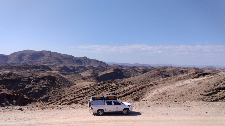 Heute fuhren wir sehr lange, insgesamt vier Stunden. Die meiste Zeit ging es durch Wüste, Savanne oder Steinhügel-Landschaft. Die Zeit vertrieben wir uns mit den merkwürdigsten Sachen: Papa pinkelte seinen Vornamen auf die Straße, ich fuhr Auto und Lilo machte Quatsch. Und Mama konzentrierte sich auf den Reiseführer. Als wir in einem Ort (naja was man eben so Ort nennen kann, es war eher ein Dorf) hielten, um Wasser zu kaufen, wunderten wir uns warum es so still war. Als wir im Geschäft einer Tankstelle waren, stellten wir fest, dass niemand an der Kasse saß. Also fuhren wir zum nächst besten Café. Dort herrschte reger Betrieb, als wir gegessen hatten und gesättigt waren, wunderten wir uns warum die Sonnenschirme, die Werbetafeln und sogar der Minilautsprecher in den Laden geräumt wurden. Als dann auch noch zu guter Letzt das WLAN des Café's gekappt wurde, kam uns der Verdacht, dass Sonntag sein könnte. Bisher waren nirgendswo auf unserer Reise am Sonntag die Geschäfte geschlossen. In einer größeren Tankstelle bekamen wir doch noch Wasser. Dann fuhren wir noch eine Stunde zur See. Wieder eine Stunde Lesen. Wieder eine Stunde durch die Wüste. Wieder eine Stunde Papas Gemecker ,,Das ist langweilig!" oder wenn ein Auto kommt, kommt promt von den Zweien auf den Vordersitzen: ,,Toyota Fortuna" (Lilo sitzt auf dem Beifahrersitz). Als wir dann endlich an der Küste ankamen, versuchten Mama und Papa vergeblich, das Schloss der geschlossenen Ladefläche aufzukriegen. Doch es ließ sich nicht aufschließen, weil jemand versucht hatte, dass Schloss aufzubrechen. Dadurch verbog sich das Schloss. Etwas später entzündete Papa mit Mühe ein Feuerchen. Bei unserer Strandwanderung sahen wir einen Robbenschädel, fünf tote Robben und noch ein paar Flossen. An der See ist es ein bisschen kälter und wir mussten unseren Pulli rausholen.