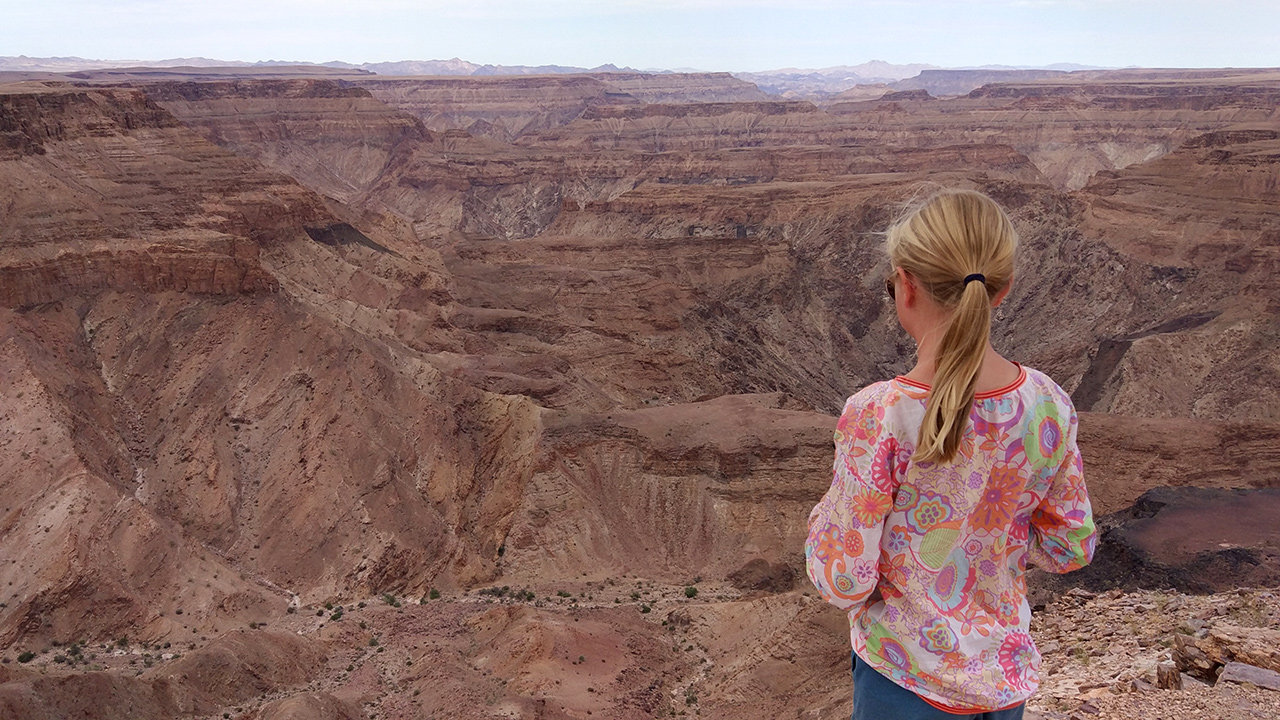 Danach ging es weiter zu diversen Viewpoints in den Fish River Canyon. Diesmal also eine steil abfallende Geröllwüste, die durch Abwesenheit jeglicher Vegetation brillierte. Es wäre wohl besser, in den Monaten zuvor nicht Naturschauspiele wie die Blue Mountains in Ost-Australien oder den Blyde River Canyon in Mpumalanga-Gebirge in Südafrika gesehen zu haben, um das hier angemessen zu würdigen.