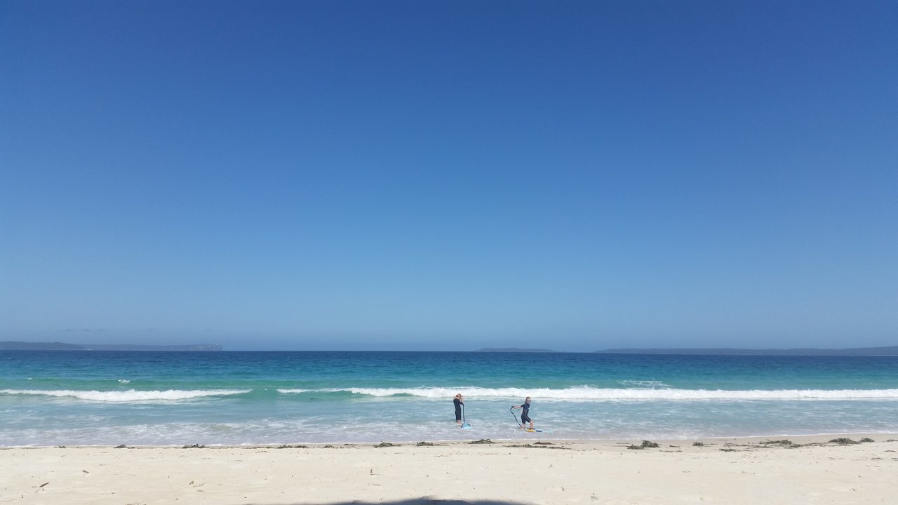 Als Erstes waren wir in Huskisson und haben dort Eis gegessen. In Hyams Beach bekamen wir dann mit dem Motorhome keinen Parkplatz. Deswegen fuhren wir weiter zum Nelsons Beach und badeten dort in den Wellen. Papa hat dabei seine Taucherbrille verloren. Außerdem habe ich mir den Kopf gestoßen, als eine Welle kam und mich nach unten drückte.