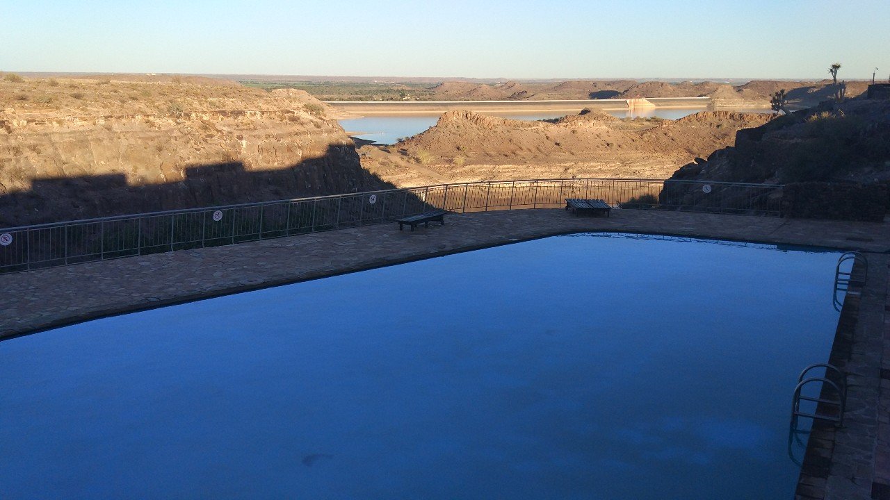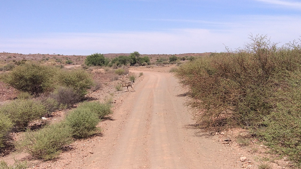 Im Hardap Nature Reserve machten wir einen Gamedrive, bei dem Tim den Allrad-Antrieb unseres Toyotas herausforderte. Zu sehen bekamen wir Oryx, Zebras, Kudus, Affen, Strauße, Riesentrappen und eine Manguste. Allerdings auch einige Tierskelette, sechs Oryx und ein Zebra wurden entweder Opfer von Raubtieren oder von Touristen mit noch gewagterer Fahrweise. Die Campsite am Hardap Staudamm ist nicht weiter erwähnenswert. Wir sind hier fast allein, nur die zahlreichen Kakerlaken im Ablution Block leisten uns Gesellschaft. So haben wir genügend Platz für weitere Kameraexperimente mit Kajas Handy.