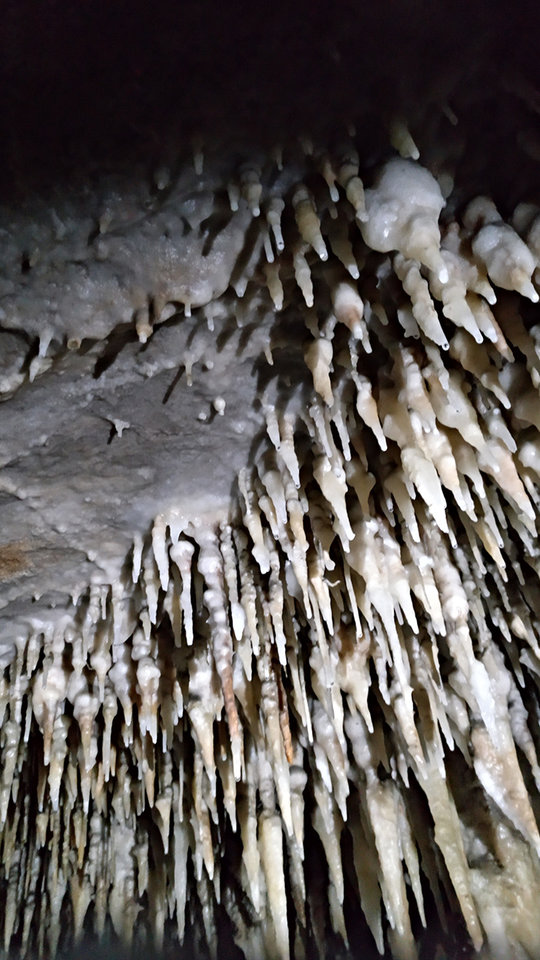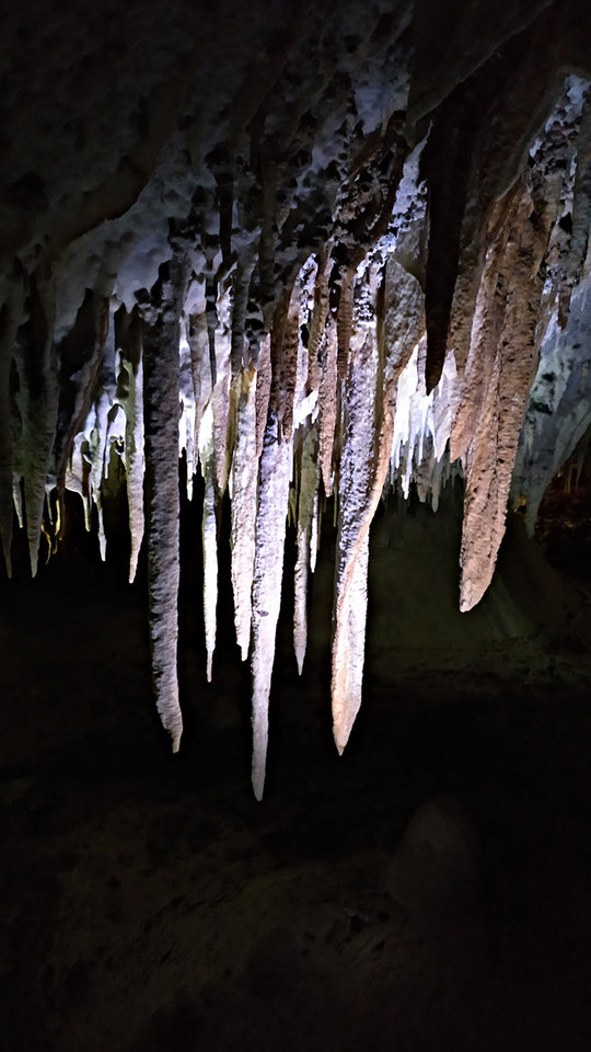 Heute waren wir in einer alten Kalksteinhöhle. Dort musste man erstmal in den Berg hinuntersteigen. Man musste sich oft bücken, weil der Gang eng und niedrig war. Es gab viele tausend Tropfsteine, die viele tausend Jahre alt waren. Manche glitzerten, manche hatten verschiedene Farben und Formen und bei manchen tropften Tropfen herunter.