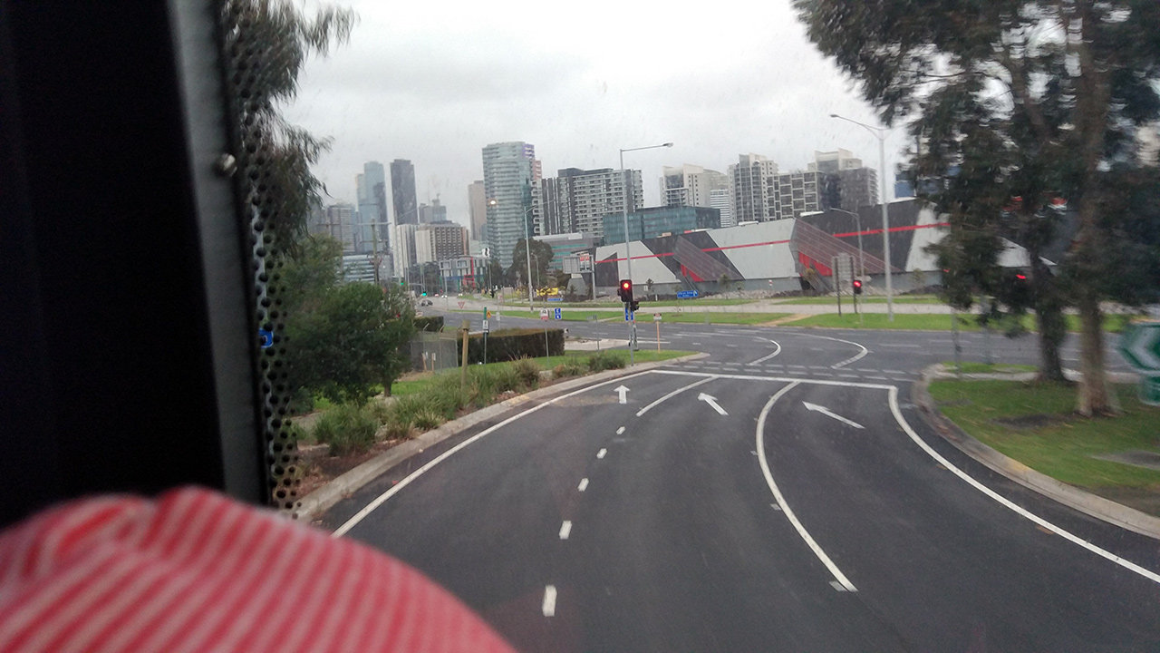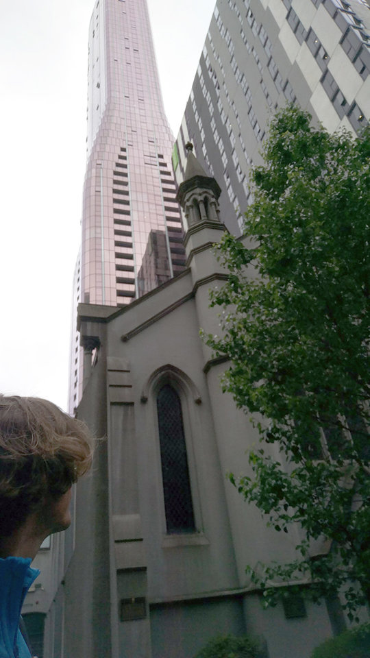 Dort warteten wir stundenlang bis zum Einchecken. Dann kam ein kurzer Flug, dank Zeitverschiebung war damit die Nacht auch vorbei. So wurden wir quasi um eine Nacht und damit um unseren Nachtschlaf gebracht. Glücklicherweise war unser Zimmer im Hostel frei und wir konnten uns am Vormittag noch einmal schlafen legen. Kaja und Lilo haben daraus gleich einen ganzen Schlafanzugtag gemacht und ausgiebig in Büchern geschmökert. Wir Erwachsenen haben derweil schon mal einen kleinen Blick auf die Metropole Melbourne geworfen ...