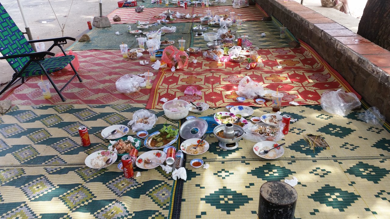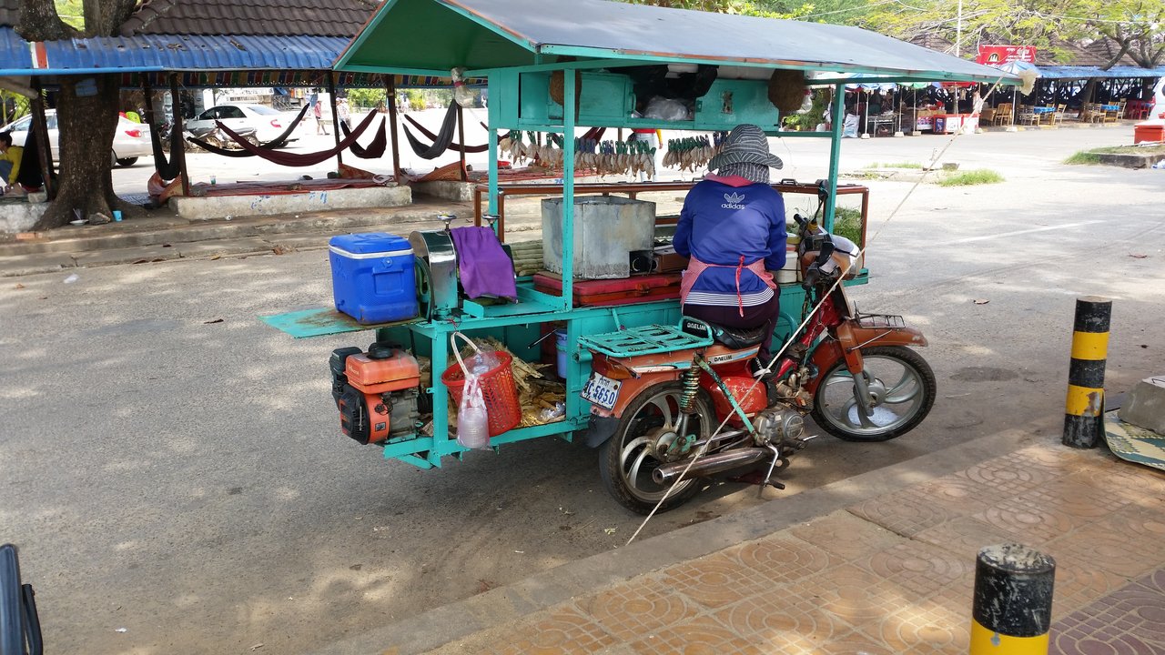 Diesmal war die Straße zum Glück nicht so staubig. Als erstes fuhren wir zu einem Krabbenmarkt. Dort gab es geröstete Tintenfische und getrocknete Meeresfrüchte.