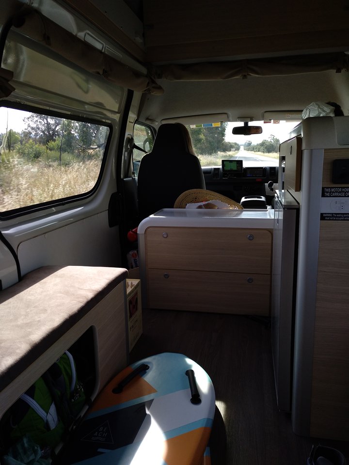Tim: Der Campevan bietet einen Komfort, der für das Unterwegsein vollkommen ausreicht. Klar, das Bett ist etwas zu kurz, dafür ist aber die Schlafunterlage angenehm (brett-)hart und nicht so durchgelegen wie in manchen Hostels oder privat vermieteten Unterkünften. Die kleine Küche im Van wird hervorragend von den Campingkitchen auf den australischen Campingplätzen ergänzt. Da kommt sogar jeden morgen jemand, der alles einmal grundreinigt. Das haben wir ja noch nicht mal zuhause. Den heimischen Schreibtisch vermisse ich bislang gar nicht. Dank passablem Prepaid-Datenvolumen (18GB für 40AUD bzw. 25€) und einem gut präparierten Laptop kann ich - wenn ich möchte - sogar ein wenig basteln, z.B. an diesem Blog hier.