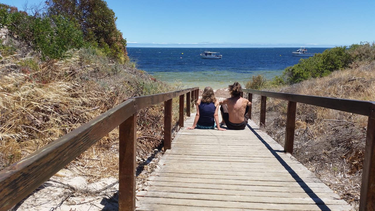 Nach einer Joggingrunde am Strand mit Kaja und anschließendem Frühstück ging es zunächst nach Leeman, um eine der häufig anzutreffenden öffentlichen (kalten) Duschen in Anspruch zu nehmen. Während die Kinder über Mathe und Deutsch grübelten, konnten die Erwachsenen einen Kaffee am Strandabgang genießen.