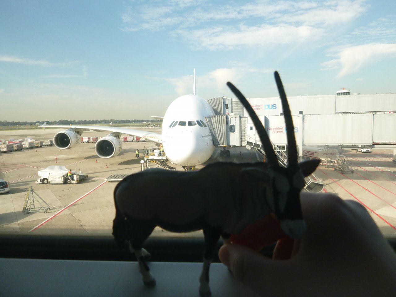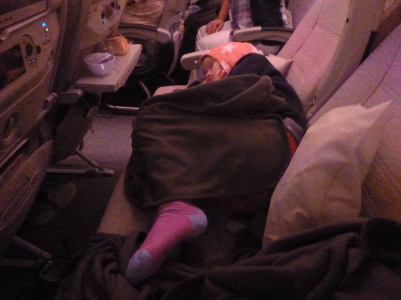 Die Wartezeit am Flughafen war ziemlich kurz und schon nutzten wir die Annehmlichkeiten von Emirates; Filme gucken bis zum Umfallen (Kaja hat vier geschafft).