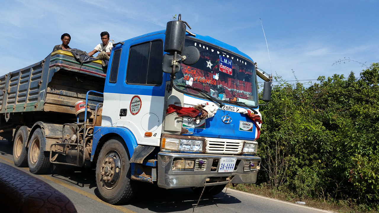 Heute waren wir in einem Schmetterlingsgarten. Wir fuhren lange mit dem Tuk-Tuk über Straßen und Feldwege. Einmal kam ein Schlagloch und wir hüpften sehr hoch. (Tuk-Tuks haben keine Anschnallgurte.) Unterwegs sahen wir Familien mit vier Personen auf einem Motorrad sitzen, überladene Anhänger an Motorrädern und Menschen, die oben auf LKWs saßen (auch ohne Anschnallgurte).