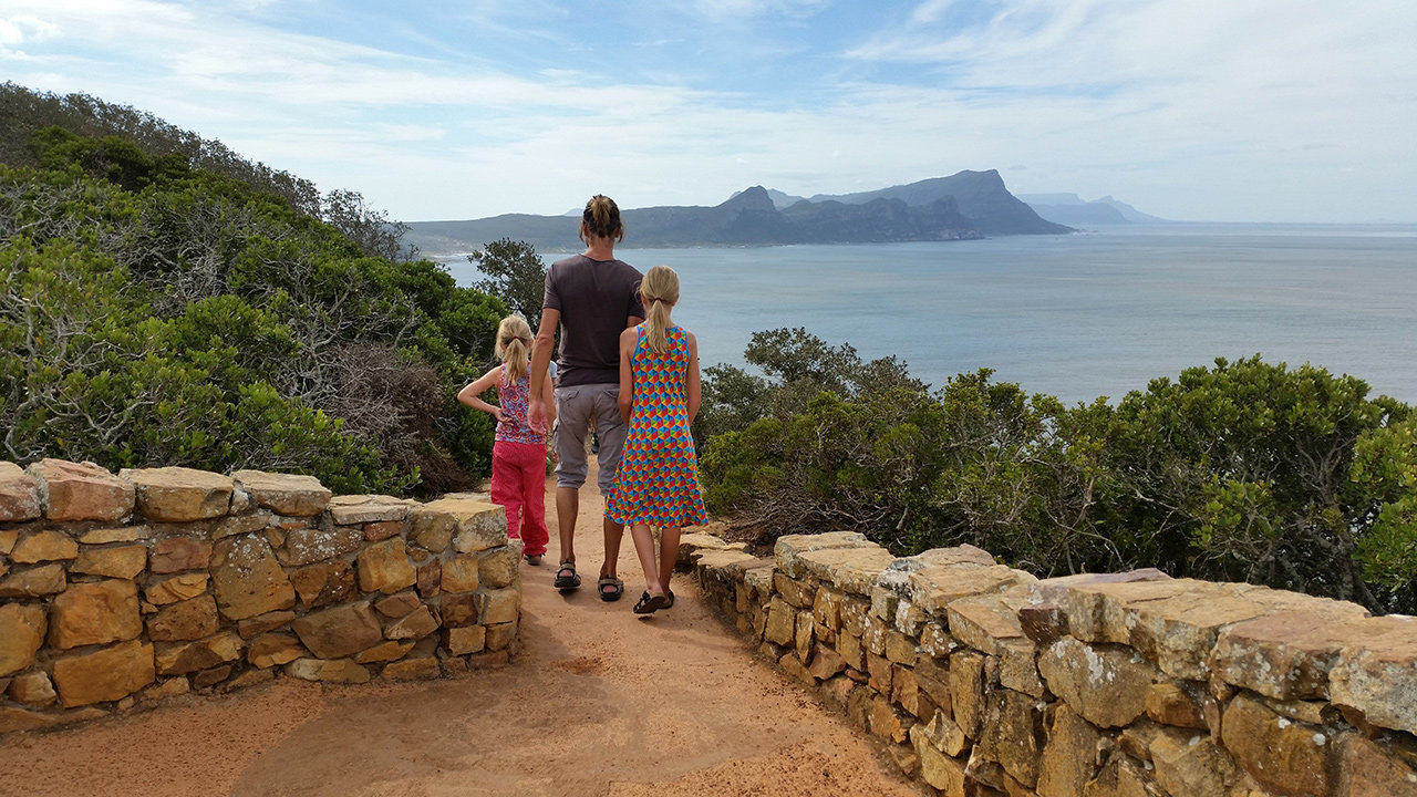 Heute waren wir ein bisschen unterwegs. Wir besuchten mit dem Auto einen Nationalpark und fuhren zum Cape Point. Dort gab es jede Menge Berge, Felsen und Meer. Wir fuhren bis zum letzten Zipfel von Südafrika, wo sich der atlantische und der indische Ozean kreuzen. Die Klippen gingen steil hinab.