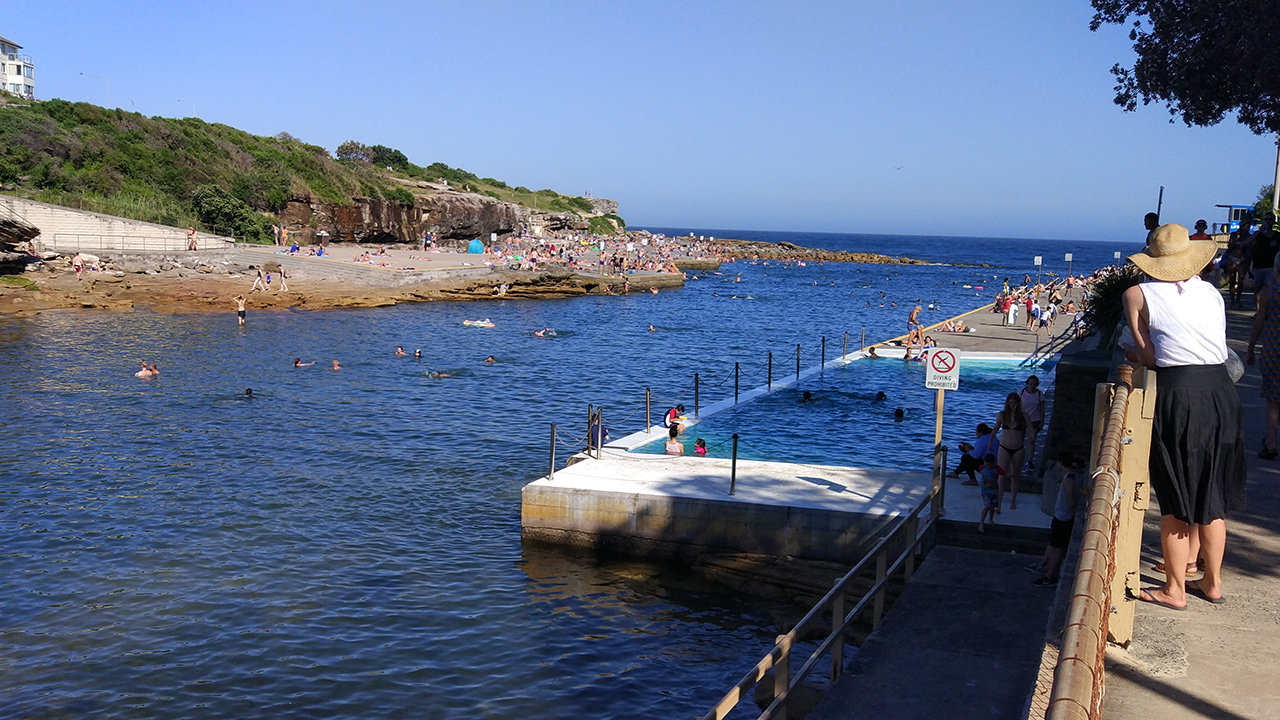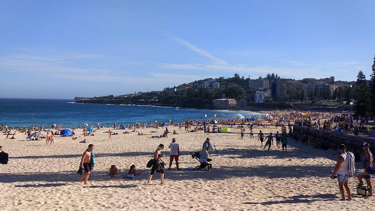 Heute sind wir in Sydney angekommmen und leben nun eine Woche in einer Wohnung statt im Campervan, die Wohnung liegt direkt am Strand von Sydney. Da wir in letzter Zeit eher an leeren Stränden gebadet haben - weil diese Strände nicht in der Nähe einer ansatzweisen großen Stadt lagen - waren wir sehr erstaunt über die Menschenmassen am Strand von Sydney. Die Strände hier sind nicht sonderlich groß und der Strand ist sooo überfüllt, dass es sogar einen extra Strand aus Beton gab. Also dort konnte man definitiv nicht alleine und in ruhiger friedlicher Stille baden. Außerdem machte sich das heiße Klima Australiens bemerkbar, zwar waren es heute nur noch 32 Grad, aber trotzdem haben wir ordentlich geschwitzt. So ging ein sonniger Tag mit blauem Himmel zu Ende.