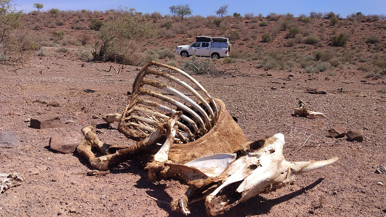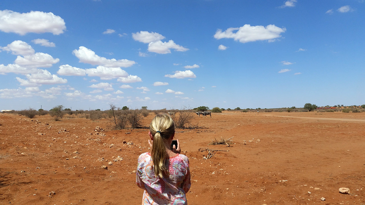 Im Hardap Nature Reserve machten wir einen Gamedrive, bei dem Tim den Allrad-Antrieb unseres Toyotas herausforderte. Zu sehen bekamen wir Oryx, Zebras, Kudus, Affen, Strauße, Riesentrappen und eine Manguste. Allerdings auch einige Tierskelette, sechs Oryx und ein Zebra wurden entweder Opfer von Raubtieren oder von Touristen mit noch gewagterer Fahrweise. Die Campsite am Hardap Staudamm ist nicht weiter erwähnenswert. Wir sind hier fast allein, nur die zahlreichen Kakerlaken im Ablution Block leisten uns Gesellschaft. So haben wir genügend Platz für weitere Kameraexperimente mit Kajas Handy.
