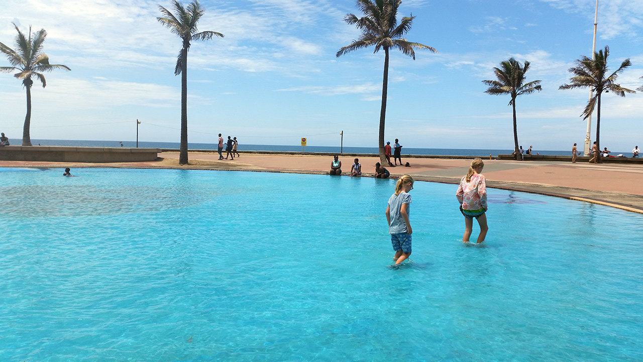 Wir befinden uns in der drittgrößten Stadt Südafrikas. Mit 3,3 Mio. Einwohnern ist Durban eine echte Großstadt. Von unserer airbnb-Unterkunft schauen wir auf das 2010 erbaute WM-Stadion. Der Stadtstrand ist nur zwei Straßen entfernt. Dort tummeln sich ein paar Surfer, während Wasserbecken auf der Strandpromenade zum Füße abkühlen einladen. Auf der Suche nach historischen Spuren haben wir die City Hall und ein paar weitere Gebäude gefunden. Innen gab es neben der Stadtverwaltung noch eine naturkundliche Ausstellung über die Vogelwelt Südafrikas.