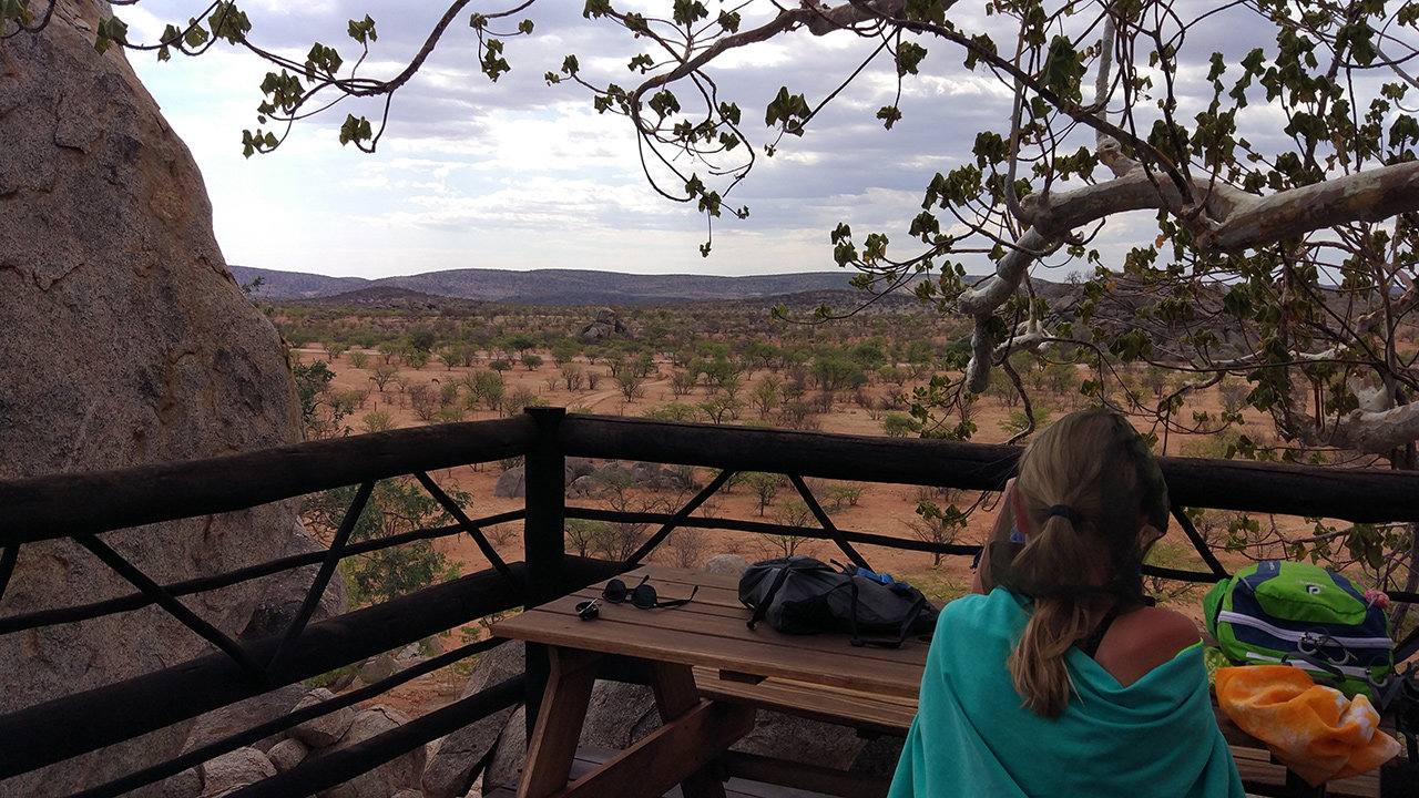 Nach einem Grillen gestern Abend mit Anne sind wir heute gemächlich weitergezogen. Unterwegs trafen wir auf Affen (das hatten wir schon mehrmals) und auf Giraffen (einfach so auf der Straße sahen wir sie noch nie). Im abgelegenen Hoada Camp liegen neben uns die Ziegen. Wir erfreuen uns an der schönen weiten Aussicht, dem erfrischenden Felsennpool und jetzt bei Nacht an den vielen funkelnden Sternen.
