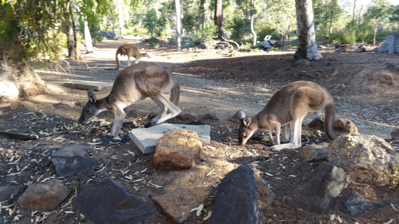 Beim einsamen Wandern durch die Wälder konnte man kaum glauben, dass hier in den 30ern - 50ern des letzten Jahrhunderts am Wochenende über 2000 Ausflügler mit Picknickkorb unterwegs waren. Heute gehört der Wald eindeutig den Kängurus. Völlig entspannt nehmen sie unsere Anwesenheit hin.