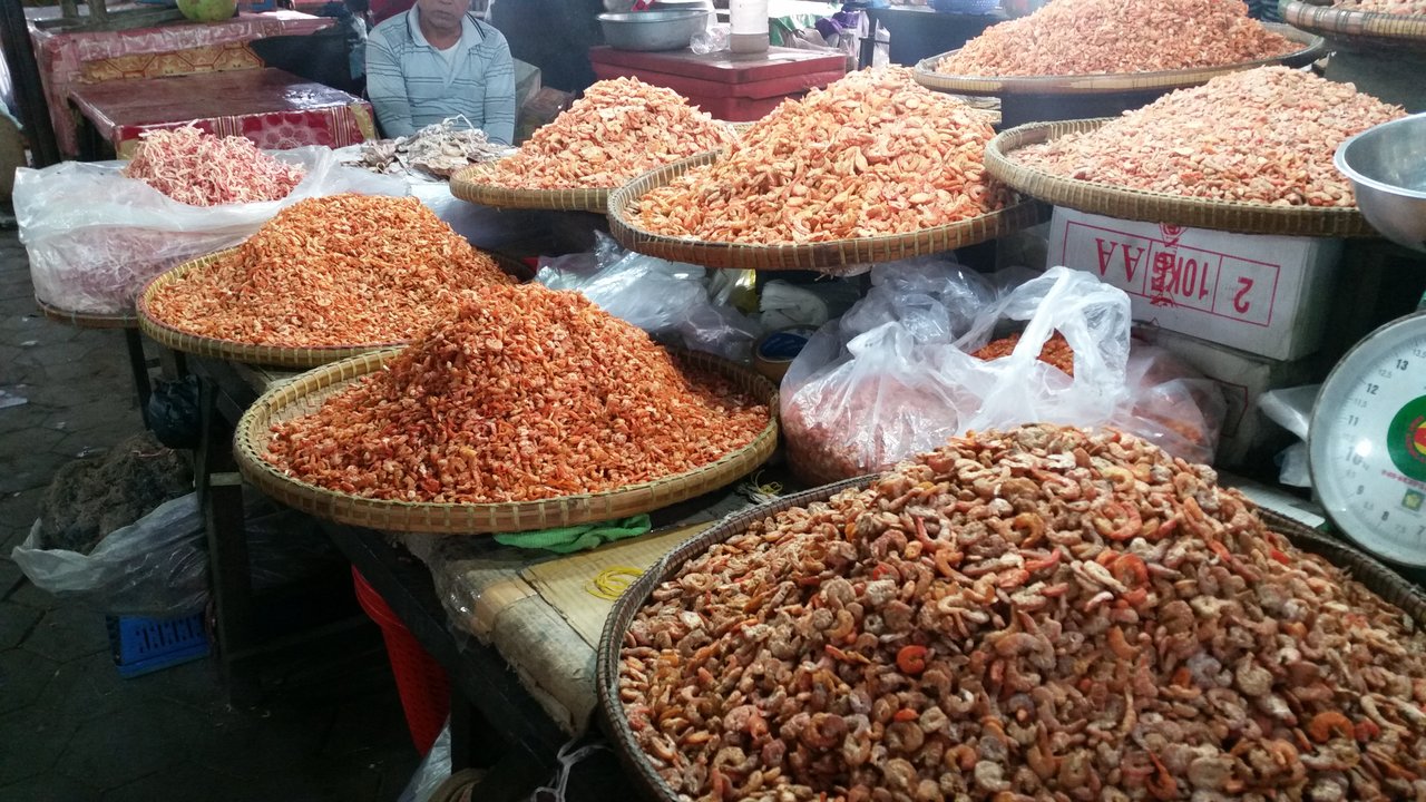 Diesmal war die Straße zum Glück nicht so staubig. Als erstes fuhren wir zu einem Krabbenmarkt. Dort gab es geröstete Tintenfische und getrocknete Meeresfrüchte.
