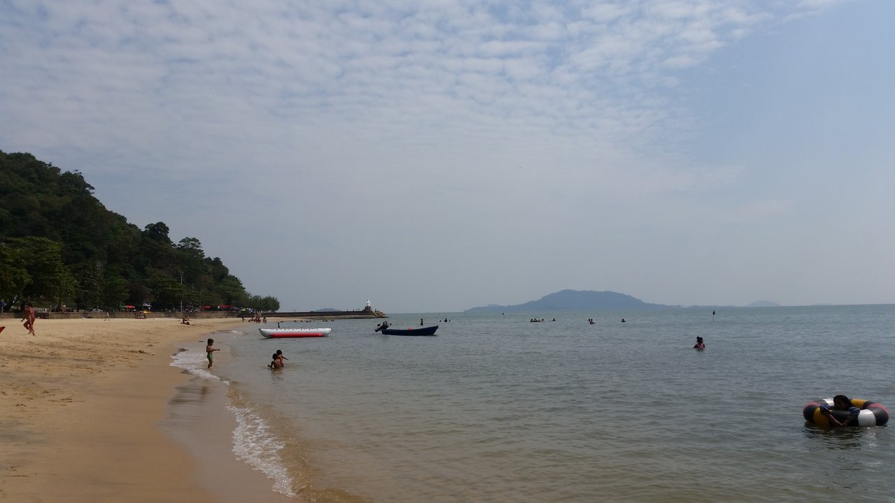 Danach fuhren wir zu einem Strand und Lilo und ich gingen baden. Im Wasser gab es eine kleine Insel (aus Gummi) mit zwei Rutschen, die Lilo und ich eroberten. Das Baden war sehr lustig.