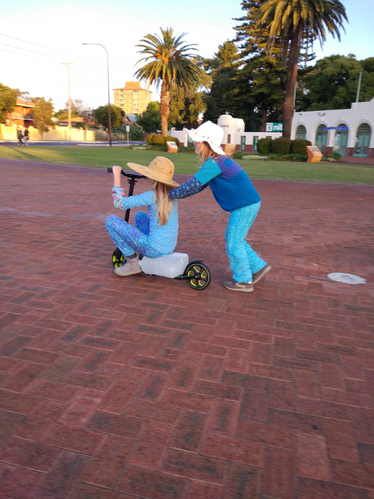 Morgens Homeschooling und dann noch mal in die Stadt, um noch ein paar lebenswichtige Utensilien einzukaufen: eine Straßenkarte (aber keinen 2-kg- "Camps 9 Australia wide", dafür die gewichtsneutrale WikiCamps-App), Sonnenhüte für die Kinder (die Erwachsenen finden irgendwie keine), Proviant für den ersten Tag on the Road ...