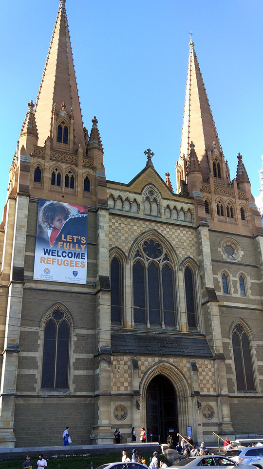 Auf dem Weg in die Stadt ging es zunächst durch die Markthallen der des Queen Victoria Market. Für unsere erste Tour durch Melbourne hat sich das schon aus Perth bekannte System der kostenlosen öffentlichen Verkehrsmittel innerhalb einer bestimmten Zone als vorteilhaft erwiesen. Also rein in die Straßebahn und erstmal zur St Paul's Cathedral. Die Australier mögen Plastikgeld, also werden die Spendenkästen ganz zeitgemäß durch kontaktlose Bezahlterminals ersetzt. Ansonsten kann eine gerade mal 130 Jahre alte neugotische Kathedrale einen Europäer nicht mehr vom Sockel reißen.
