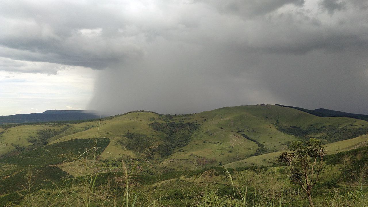 Als wir dann endlich auf einem großen Berg angekommen sind, auf dem wir auch übernachten, gab es dort gar keine Aussicht mehr. Denn es regnete so stark, dass man nur grau sehen konnte.