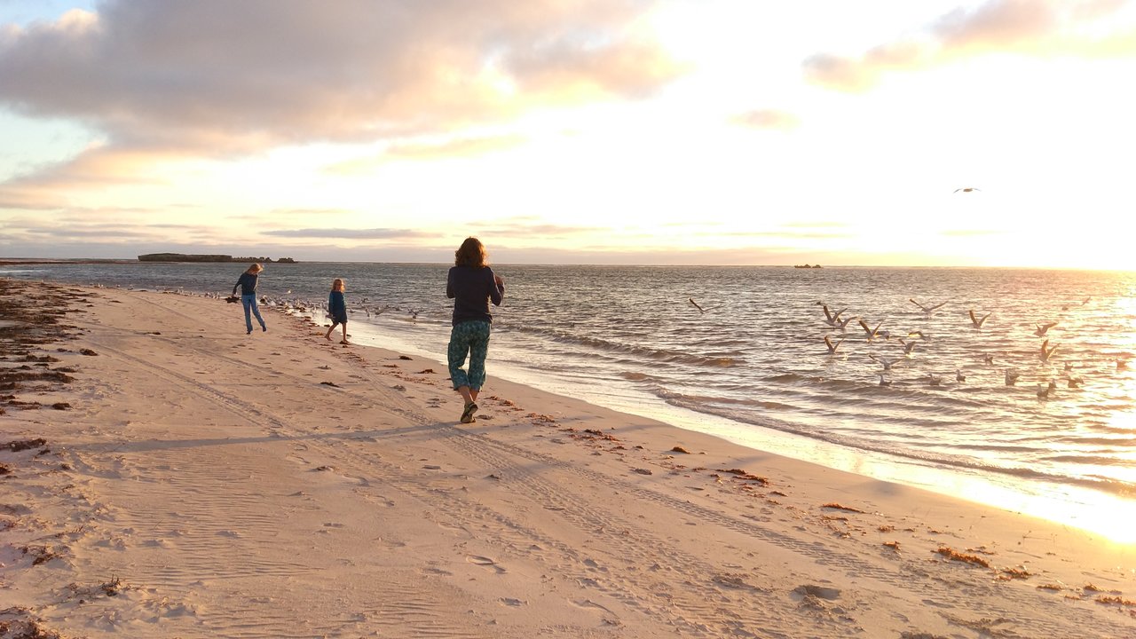 Passend zum Sonnenuntergang waren wir dann in Lancelin. Die Kinder konnten mal wieder ein bisschen Möwen aufscheuchen.