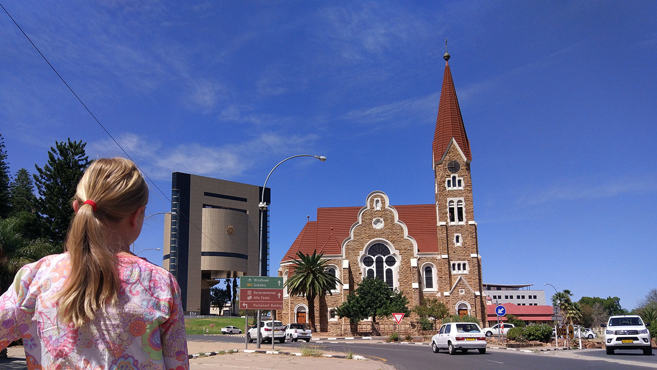 Die paar Sehenswürdigkeiten, die es gibt, haben wir abgeklappert: Das Kudu-Denkmal, die Nationalgallerie (sehr überschaubar), die Christus-Kirche, das Nationalmuseum (ziemlich abgeranzt), das Independence Memorial Museum (neuer Prachtbau, von Nordkorea gesponsort), die alte Festung, das Parlamentsgebäude, die Fußgängerzone. Damit waren wir in vier Stunden auch schon durch.